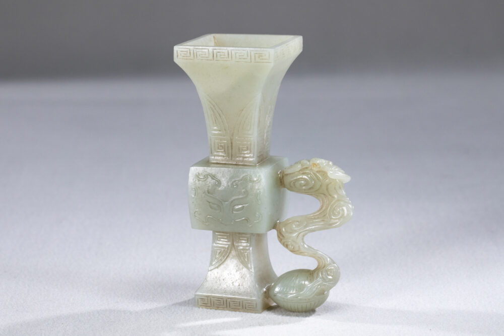 13043.白玉獸面龍紋方觚