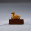 羊為中國傳統瑞獸之一,自古象徵祥和、孝順與吉兆,常見於王公貴族隨葬之器物中,作為護佑亡靈、祈願來世安穩之意。此件或為高級陪葬品,亦可能為宮廷賞賜或宗教供器,兼具精神與象徵意涵。純金製品因其材料貴重,極為珍罕,多數金器早已於歷代戰亂與改鑄中散佚,存世者寥寥可數。此羊之製作水準、材質純度與藝術風格,可見其難能可貴的尊貴地位。