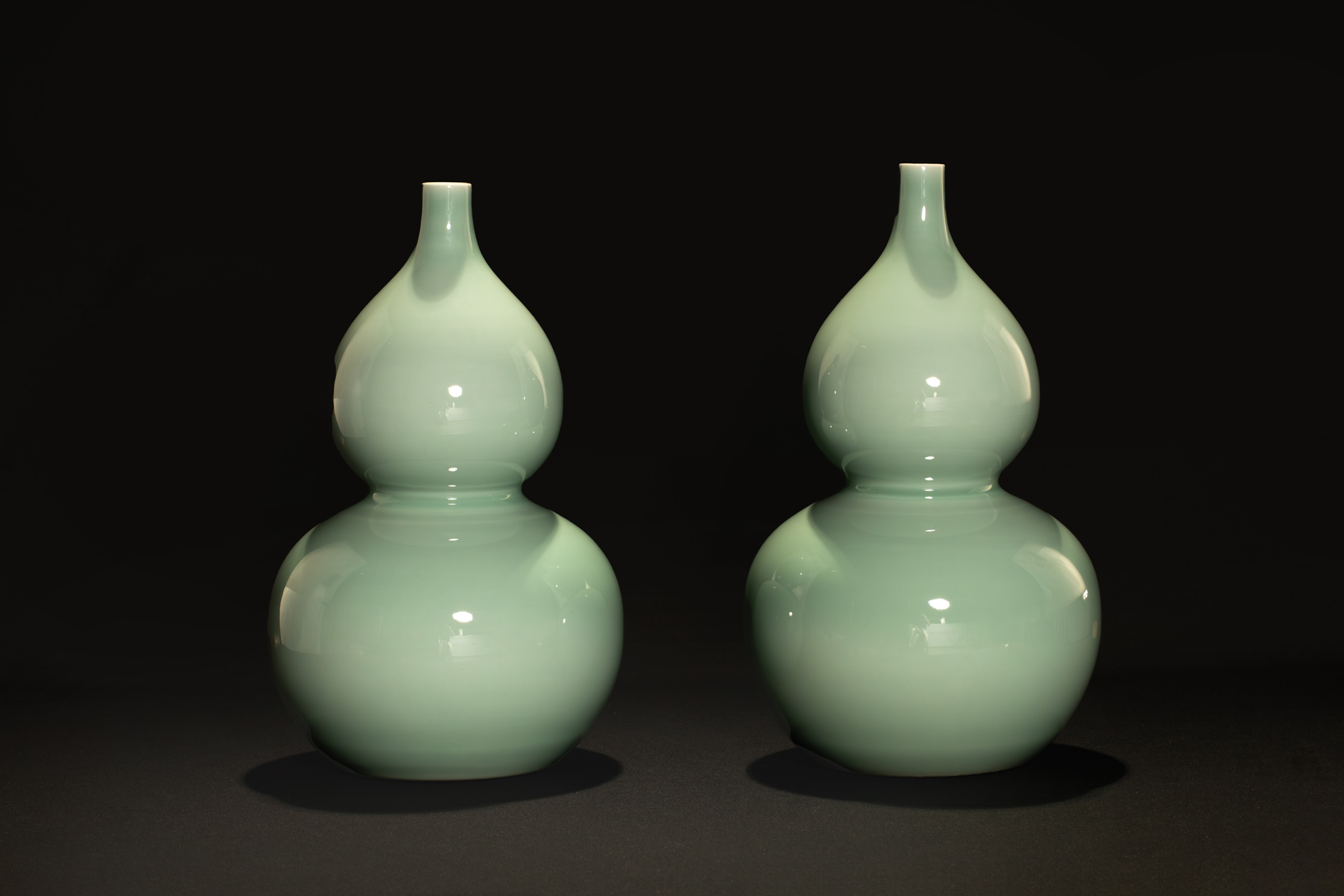 18003.大風堂訂燒曉芳窯粉青釉葫蘆瓶一對