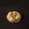 器身下部隨料高浮雕伏虎羅漢,其態生動傳神。羅漢呈側身盤坐之姿,一手持帶牽引,似已降伏猛虎,猛虎則於另一側趴伏蹲踞,與羅漢分列瓶底左右兩側,簇擁器底。此種佈局巧妙打破了規整的方形圈足,將原本樸實的器座轉化為極具動態感的敘事空間。