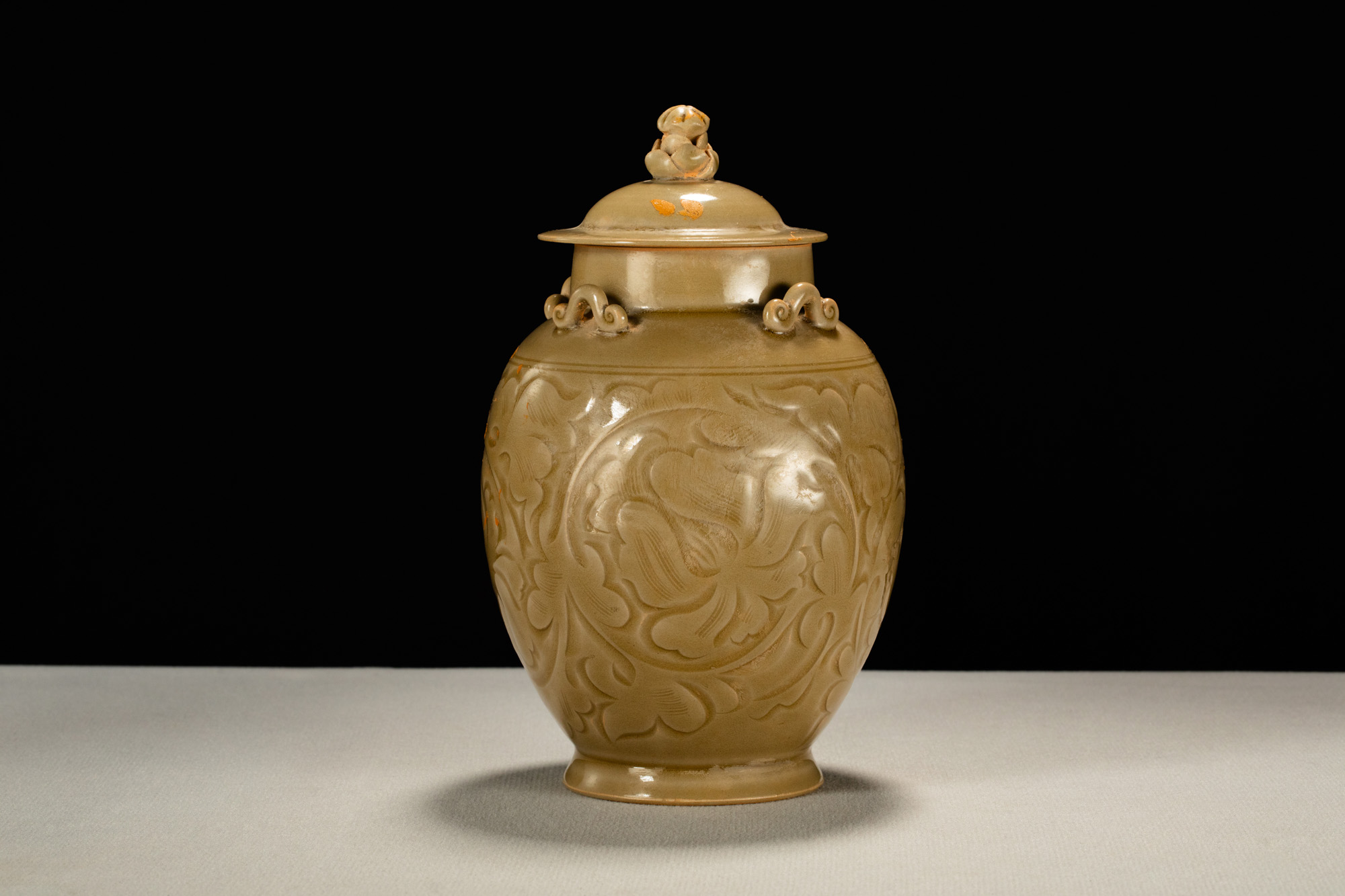 22016.耀州窯刻花四系蓋罐