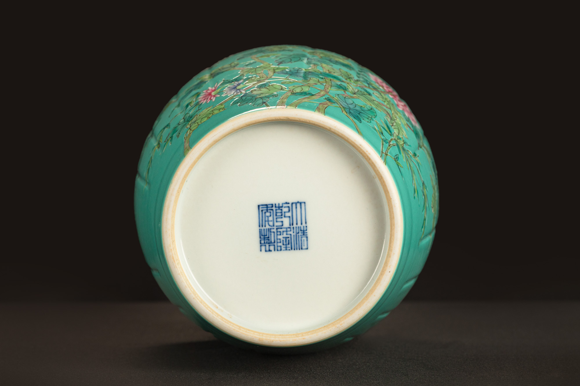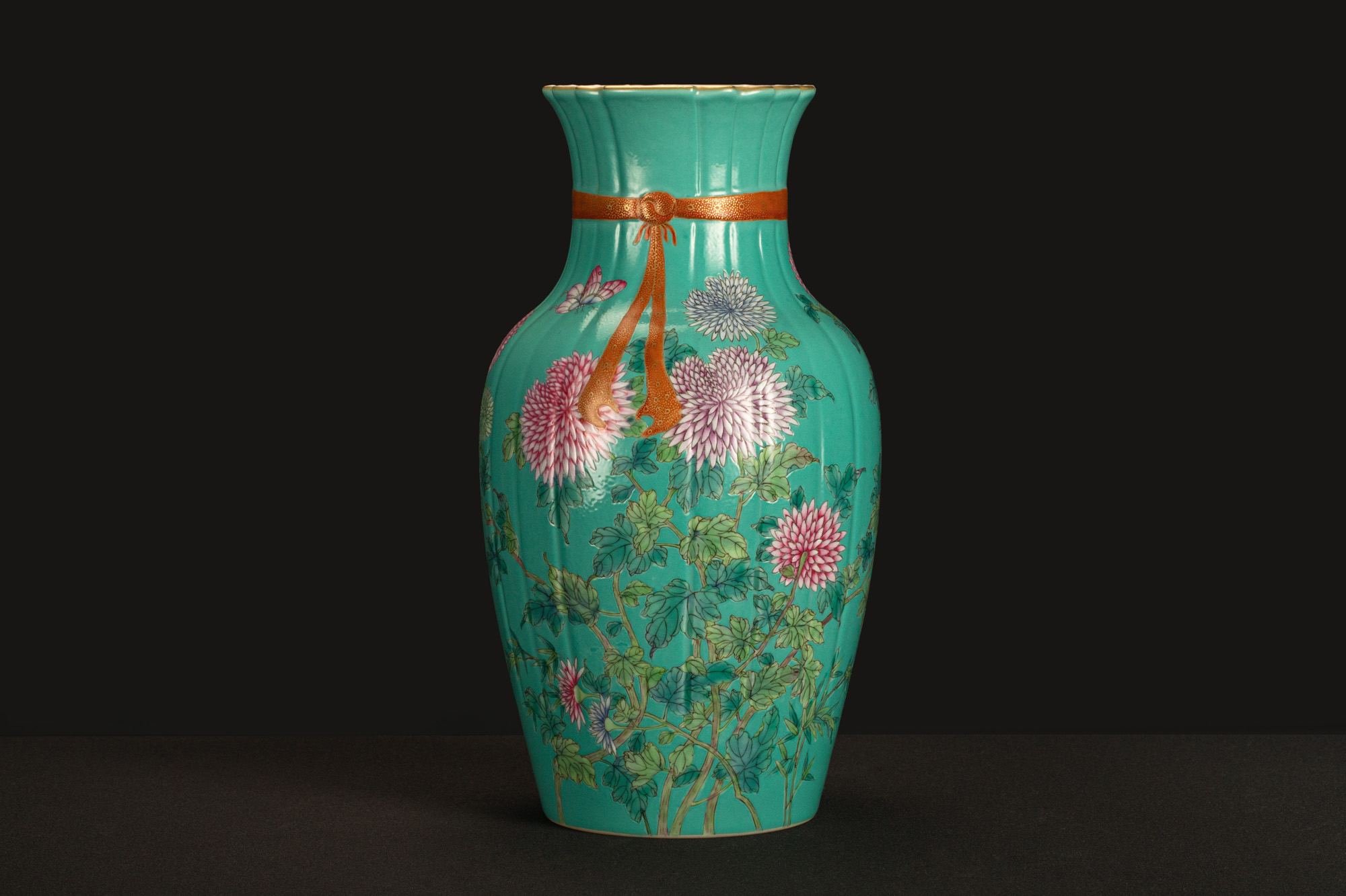 23002.綠松石地粉彩花口瓶