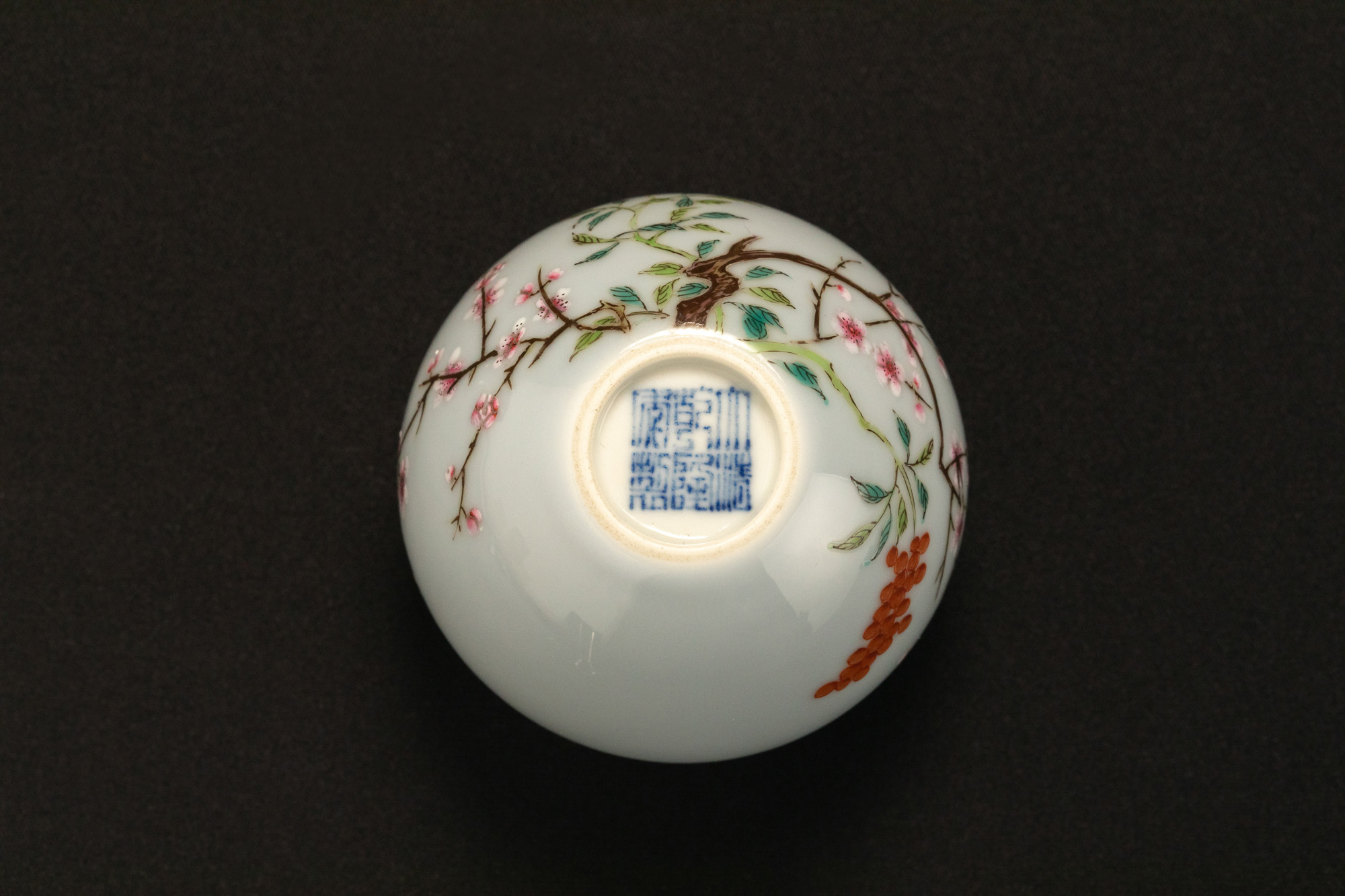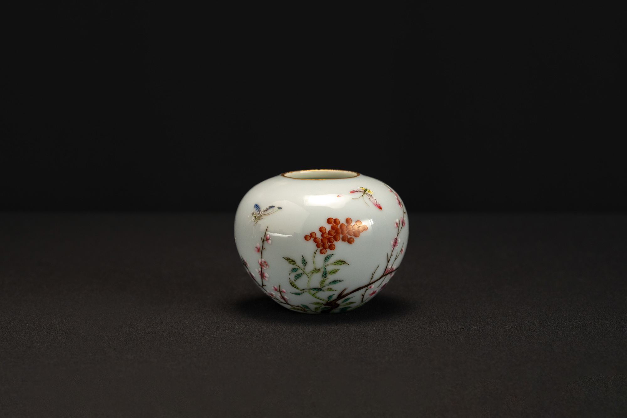 23003.大清乾隆年製藍釉粉彩花蝶水盂