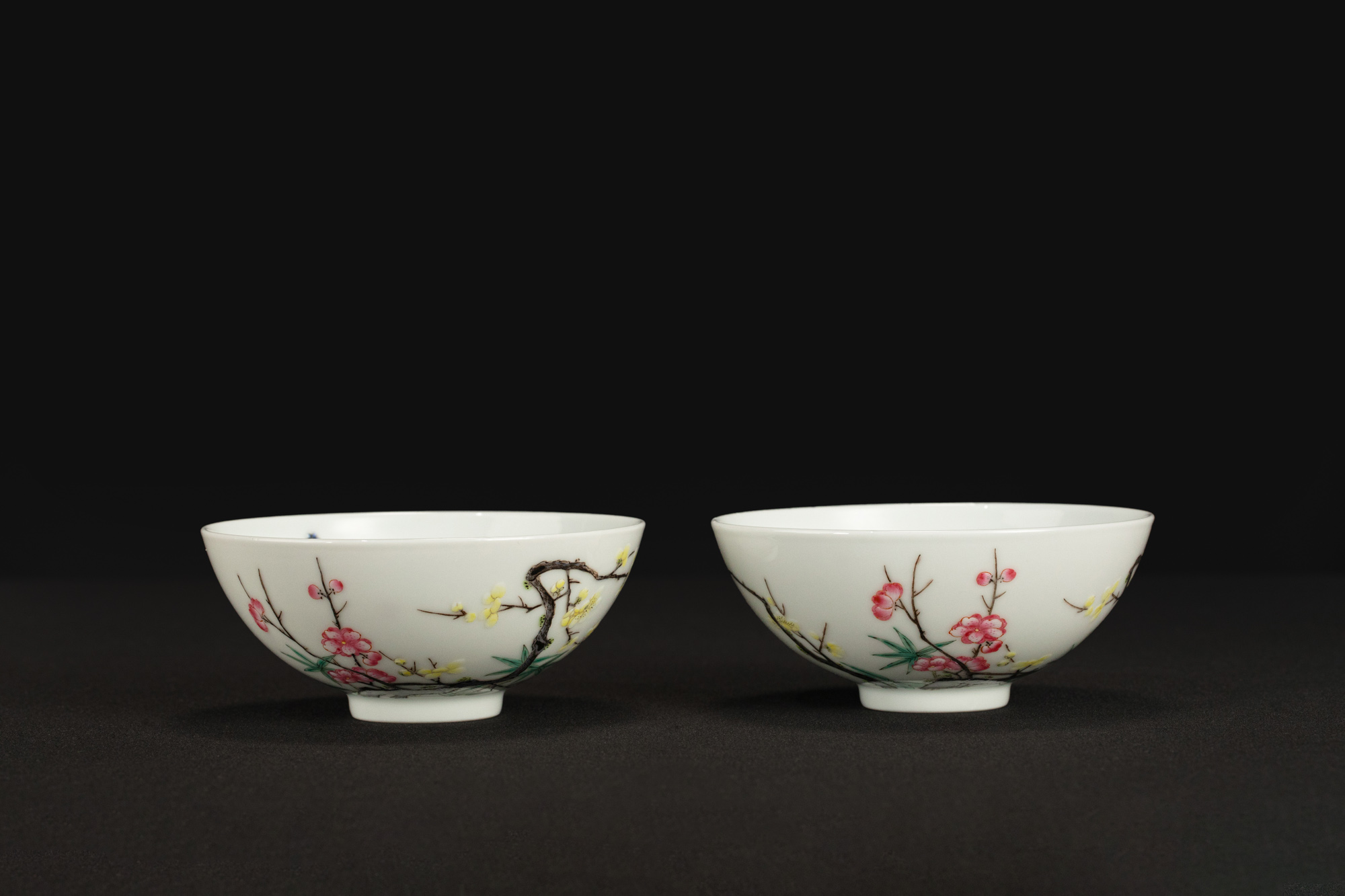 23007.雍正款粉彩梅花碗一對