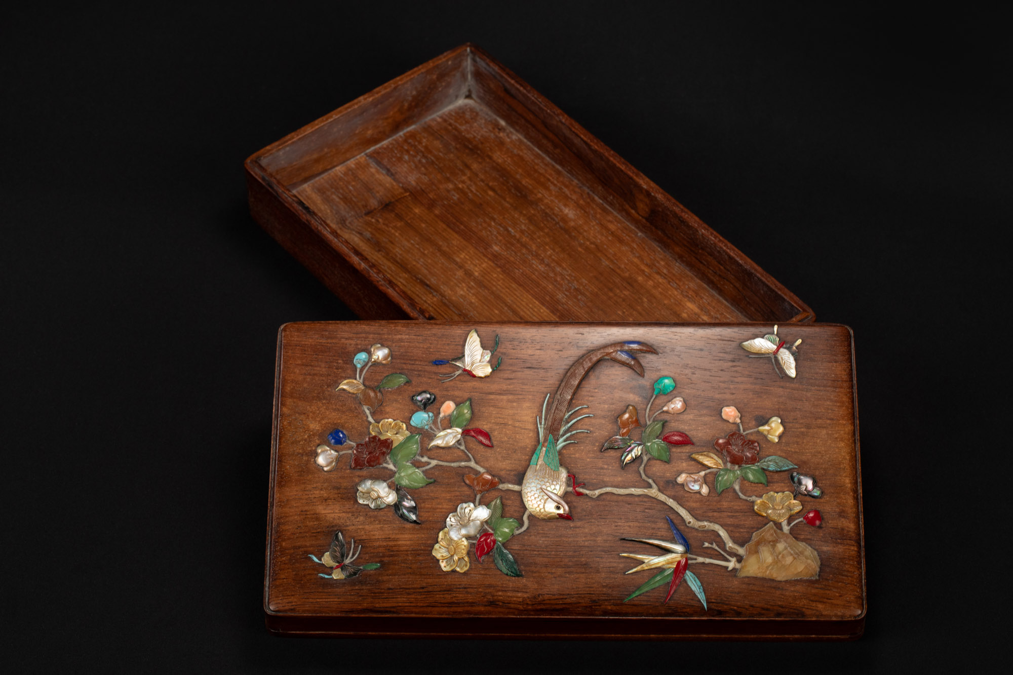 23148.黃花梨百寶嵌花鳥紋木盒