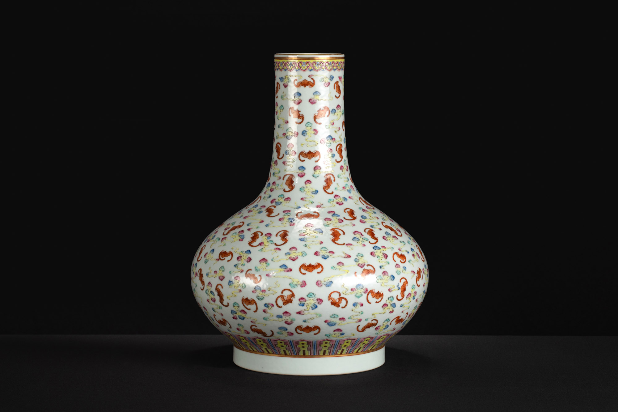24013.粉彩百蝠紋荸薺瓶