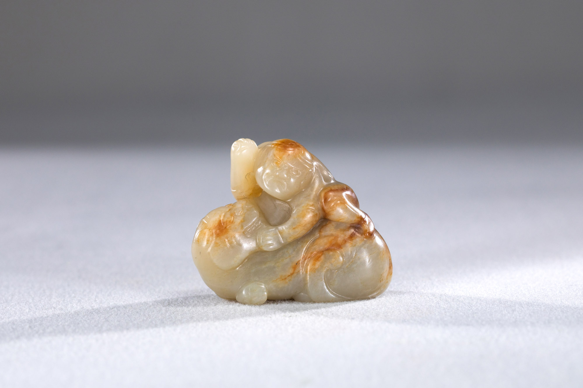 24110.白玉胡人馴獸擺件